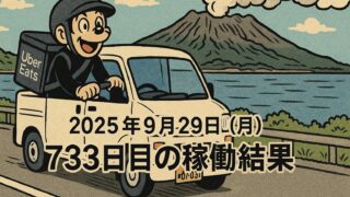 2025年9月29日(月) 733日目、鹿児島ウーバー配達員の稼働結果
