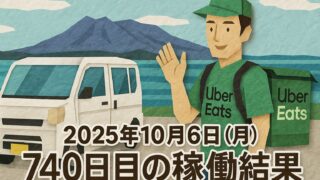 2025年10月6日(月) 740日目、鹿児島ウーバー配達員の稼働結果