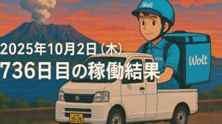 2025年10月1日(水) 735日目、鹿児島ウーバー配達員の稼働結果