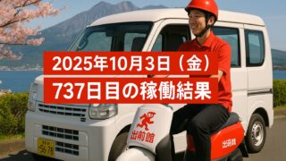 2025年10月3日(金) 737日目、鹿児島ウーバー配達員の稼働結果