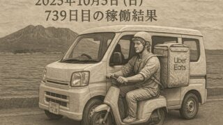 2025年10月5日(日) 739日目、鹿児島ウーバー配達員の稼働結果