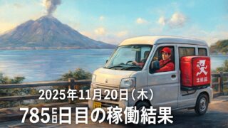 2025年11月20日(木) 785日目、鹿児島ウーバー配達員の稼働結果