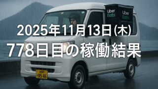 2025年11月13日(木) 778日目、鹿児島ウーバー配達員の稼働結果