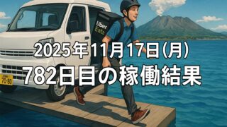 2025年11月17日(月) 782日目、鹿児島ウーバー配達員の稼働結果