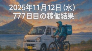 2025年11月12日(水) 777日目、鹿児島ウーバー配達員の稼働結果