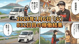 2026年1月6日(火) 832日目、鹿児島ウーバー配達員の稼働結果