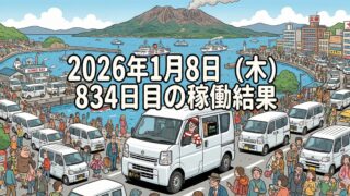 2026年1月8日(木) 834日目、鹿児島ウーバー配達員の稼働結果