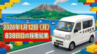 2026年1月12日(月) 838日目、鹿児島ウーバー配達員の稼働結果