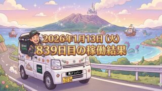 2026年1月13日(火) 839日目、鹿児島ウーバー配達員の稼働結果