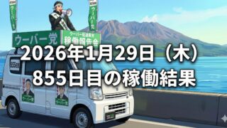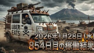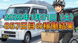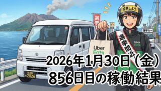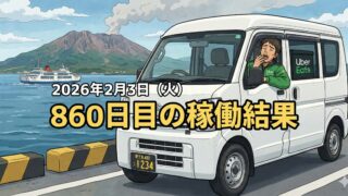フードデリバリー 2026年2月4日(水) 861日目、鹿児島ウーバー配達員の稼働結果(軽貨物で専業Uber、出前館の配達員)