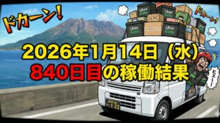 2026年1月14日(水) 840日目、鹿児島ウーバー配達員の稼働結果