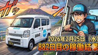 フードデリバリー 2026年2月25日(水) 882日目、鹿児島ウーバー配達員の稼働結果