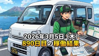 こんにちは!50歳で会社倒産・自己破産おじさんのステゴーです。2026年3月5日(木)890日目、鹿児島ウーバー配達員の稼働結果です。稼働時間4時間50分ウーバー4件6,405円出前館9件4,201円PickGo0件合計13件10,606円...