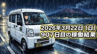 フードデリバリー 2026年3月22日(日) 907日目、鹿児島ウーバー配達員の稼働結果