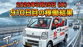 こんにちは!50歳で会社倒産・自己破産おじさんのステゴーです。2026年3月25日(水)910日目、鹿児島ウーバー配達員の稼働結果です。稼働時間11時間28分ウーバー21件11,571円出前館10件5,939円PickGo3件1,700円合...