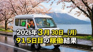 こんにちは!50歳で会社倒産・自己破産おじさんのステゴーです。2026年3月30日(月)915日目、鹿児島ウーバー配達員の稼働結果です。稼働時間11時間33分ウーバー30件17,284円出前館 1件 407円PickGo 0件合計...