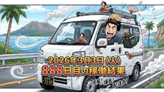 フードデリバリー 2026年3月3日(火) 888日目、鹿児島ウーバー配達員の稼働結果