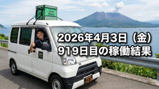 こんにちは!50歳で会社倒産・自己破産おじさんのステゴーです。2026年4月3日(金)919日目、鹿児島ウーバー配達員の稼働結果です。稼働時間5時間7分ウーバー8件3,286円出前館 2件 986円PickGo 1件 641円合計 ...