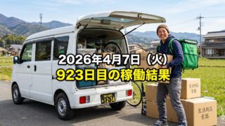 こんにちは!50歳で会社倒産・自己破産おじさんのステゴーです。2026年4月7日(火)923日目、ウーバー配達員の稼働結果です。稼働時間0時間0分ウーバー0件出前館0件PickGo0件合計0件移住のための引っ越し作業でフーデリ稼働はお休みし...