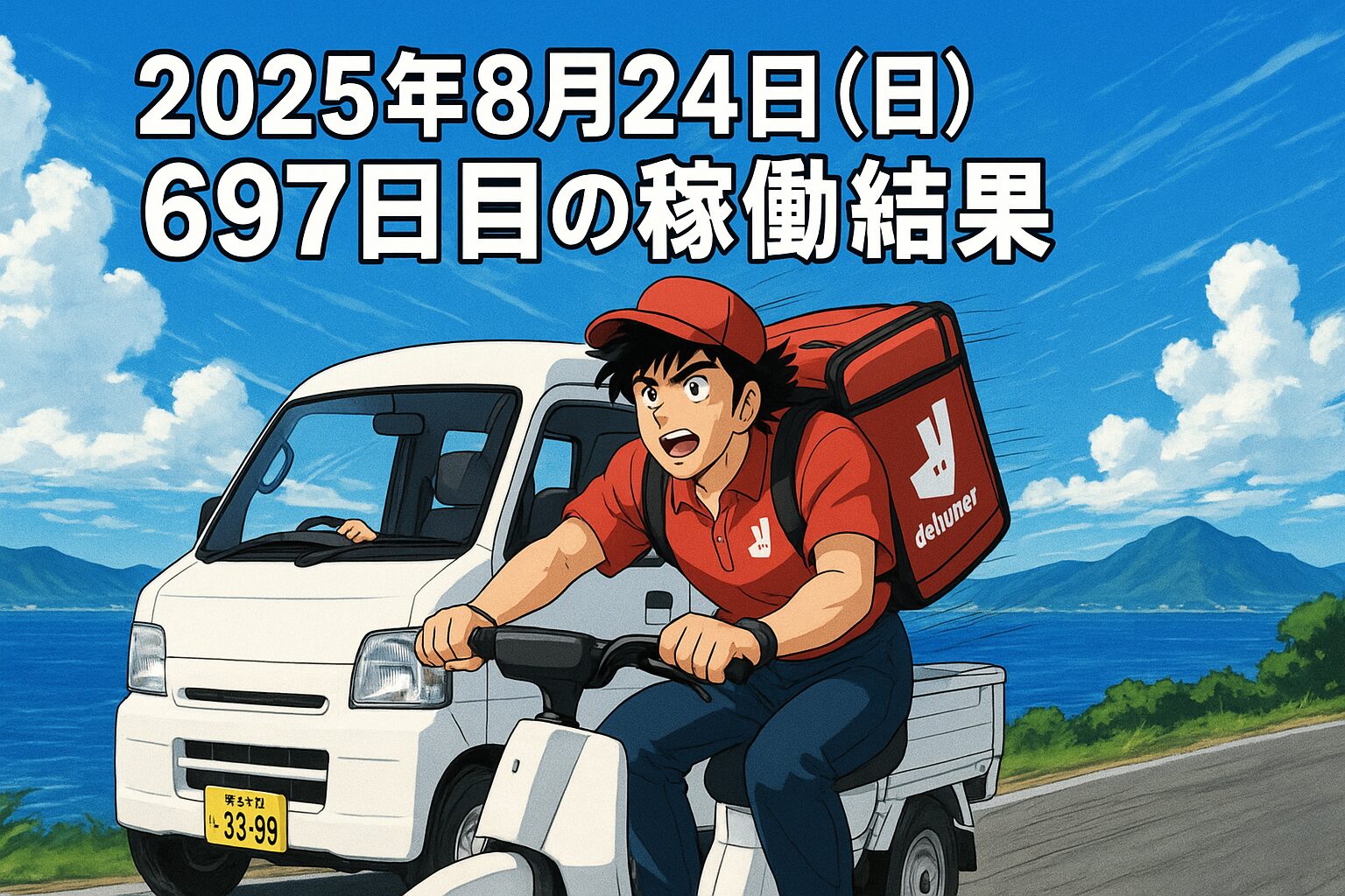 2025年8月24日(日) 697日目、鹿児島ウーバー配達員の稼働結果です。