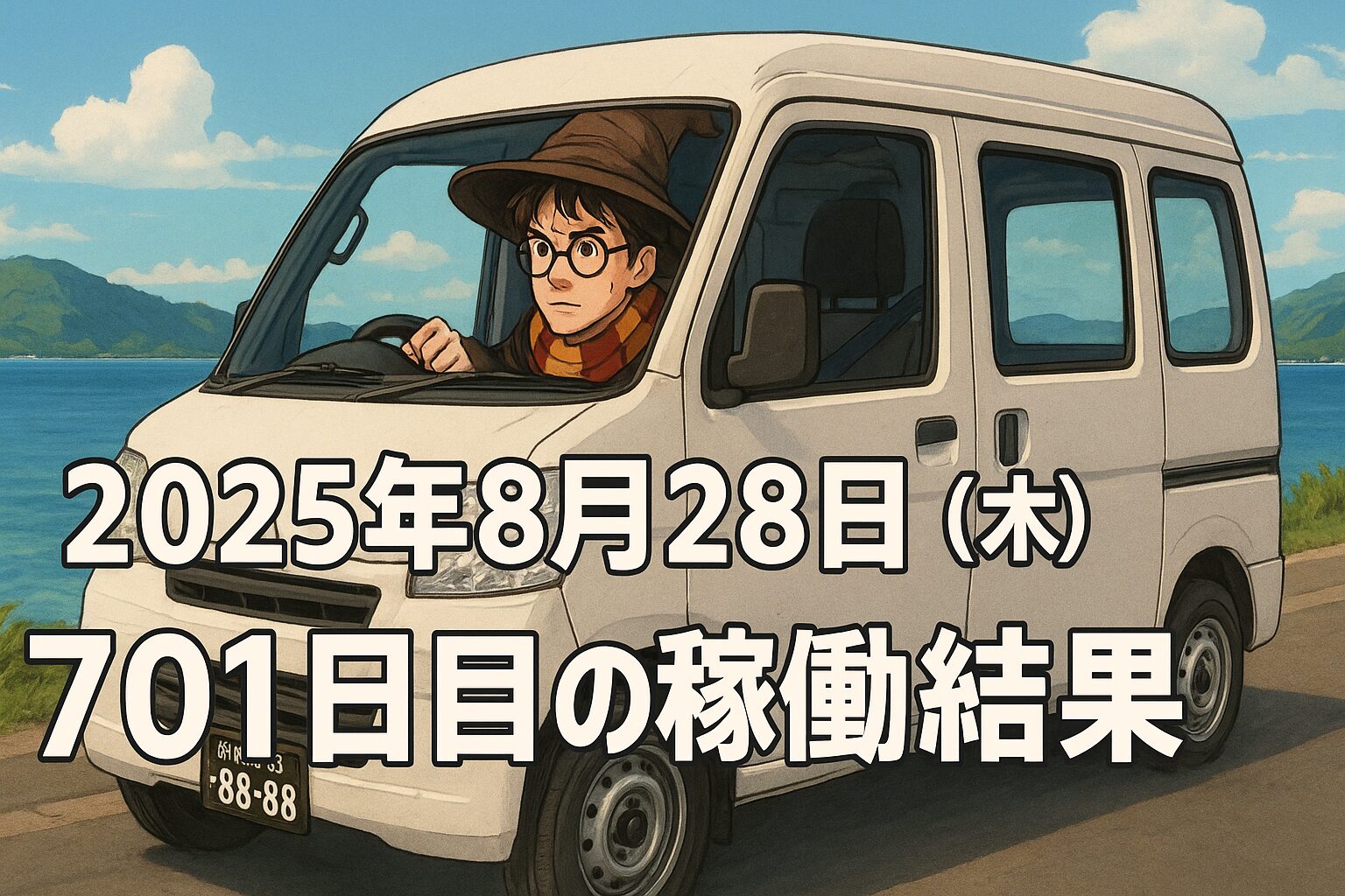 2025年8月28日(木) 701日目、鹿児島ウーバー配達員の稼働結果です。