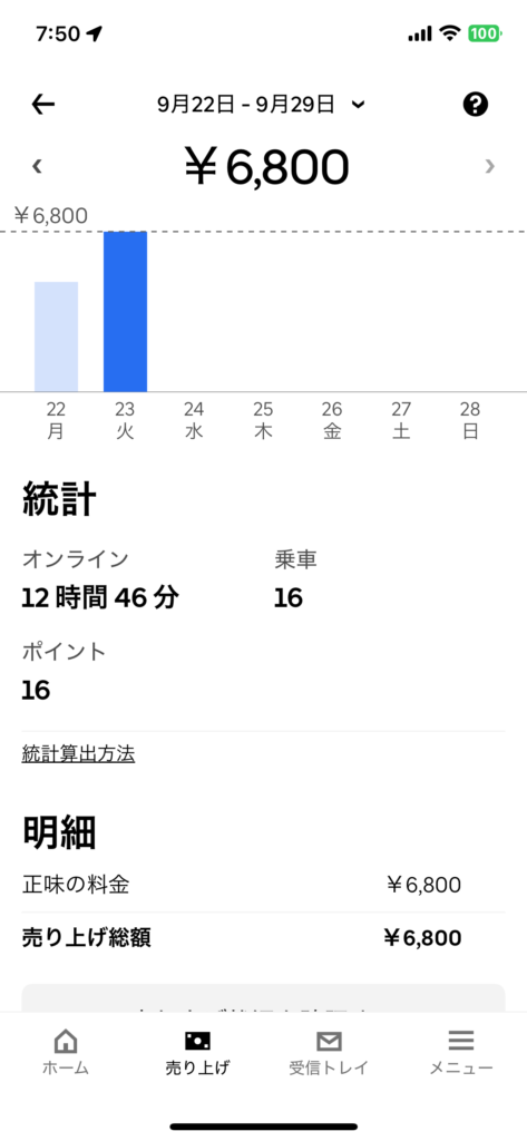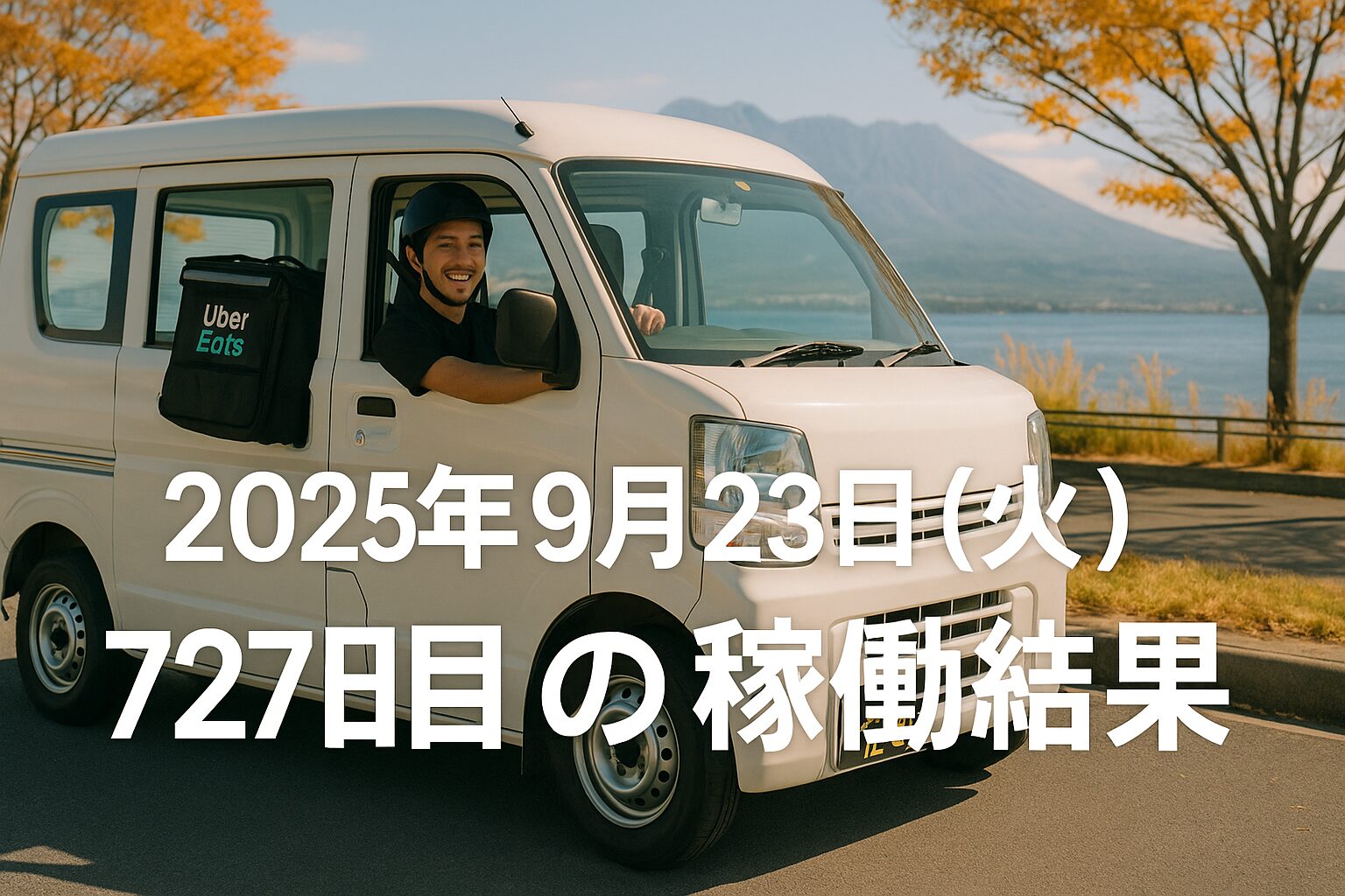 2025年9月23日(火) 727日目、鹿児島ウーバー配達員の稼働結果です。