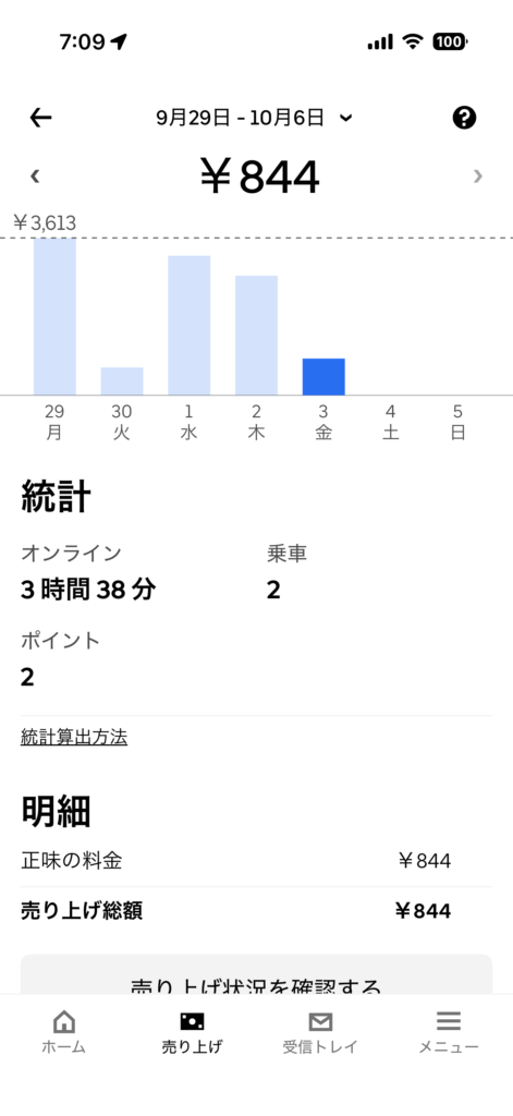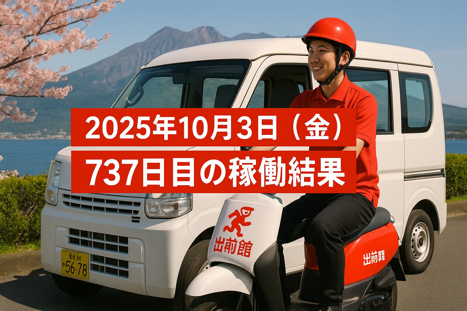 2025年10月3日(金) 737日目、鹿児島ウーバー配達員の稼働結果です。