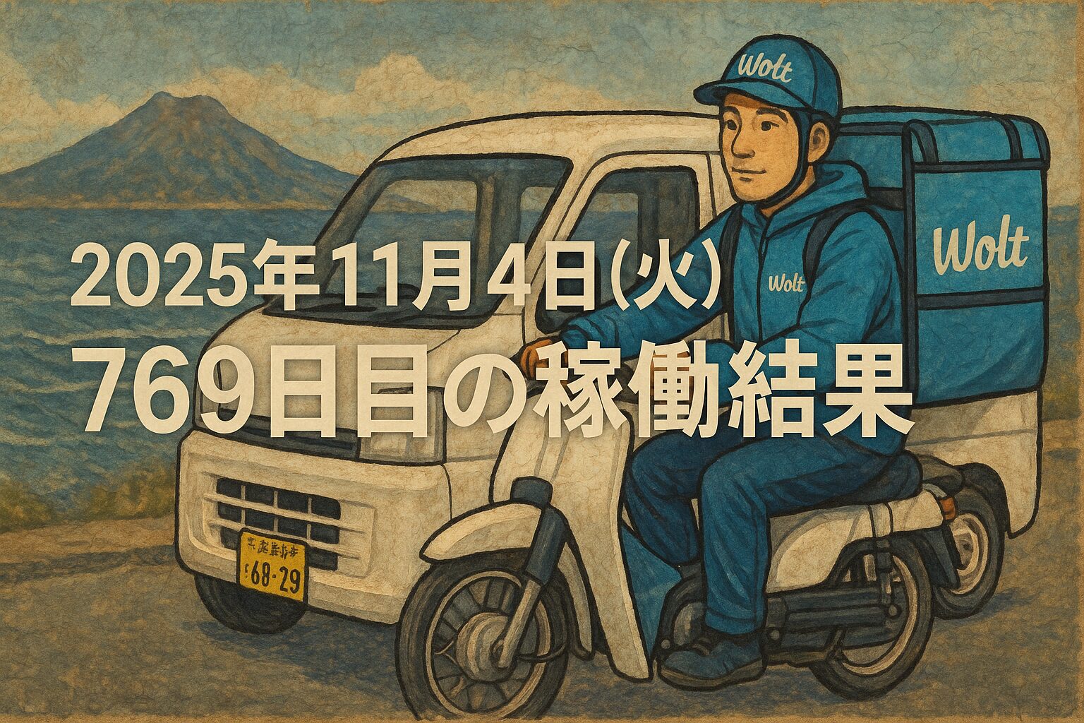 2025年11月4日(火) 769日目、鹿児島ウーバー配達員の稼働結果です。