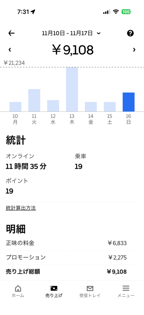 ウーバー 19件 9,108円