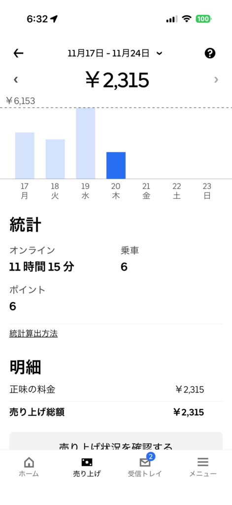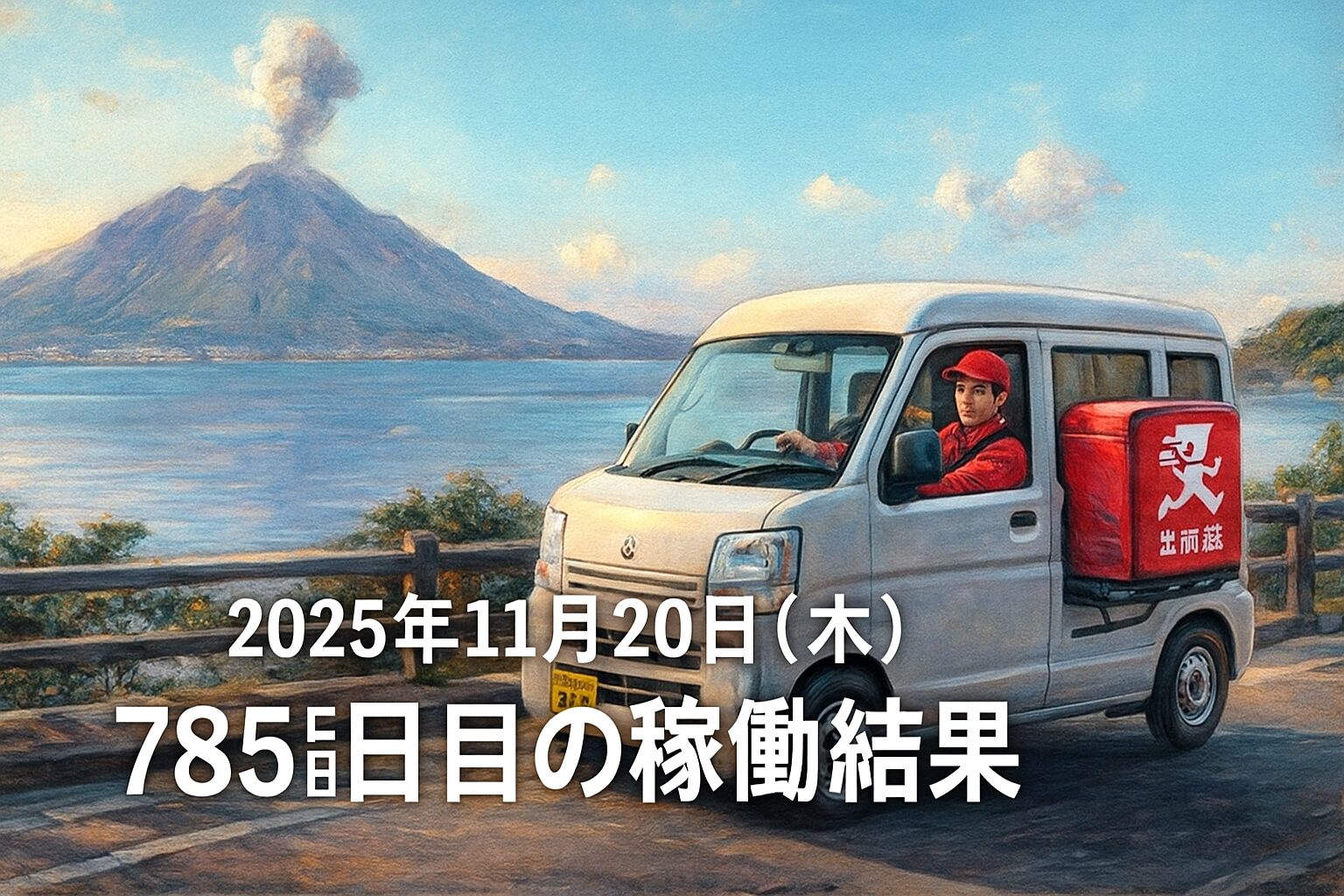 2025年11月20日(木) 785日目、鹿児島ウーバー配達員の稼働結果です。