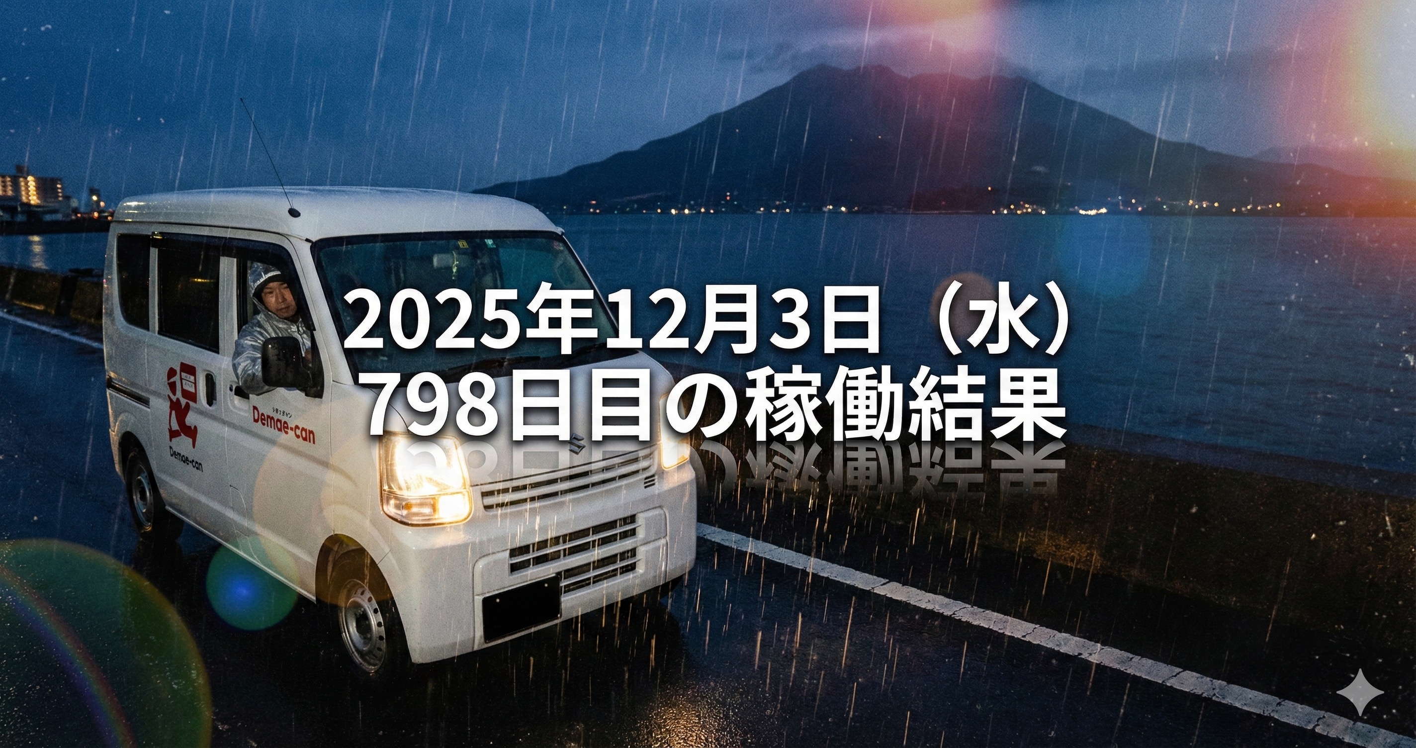 2025年12月3日(水) 798日目、鹿児島ウーバー配達員の稼働結果です。