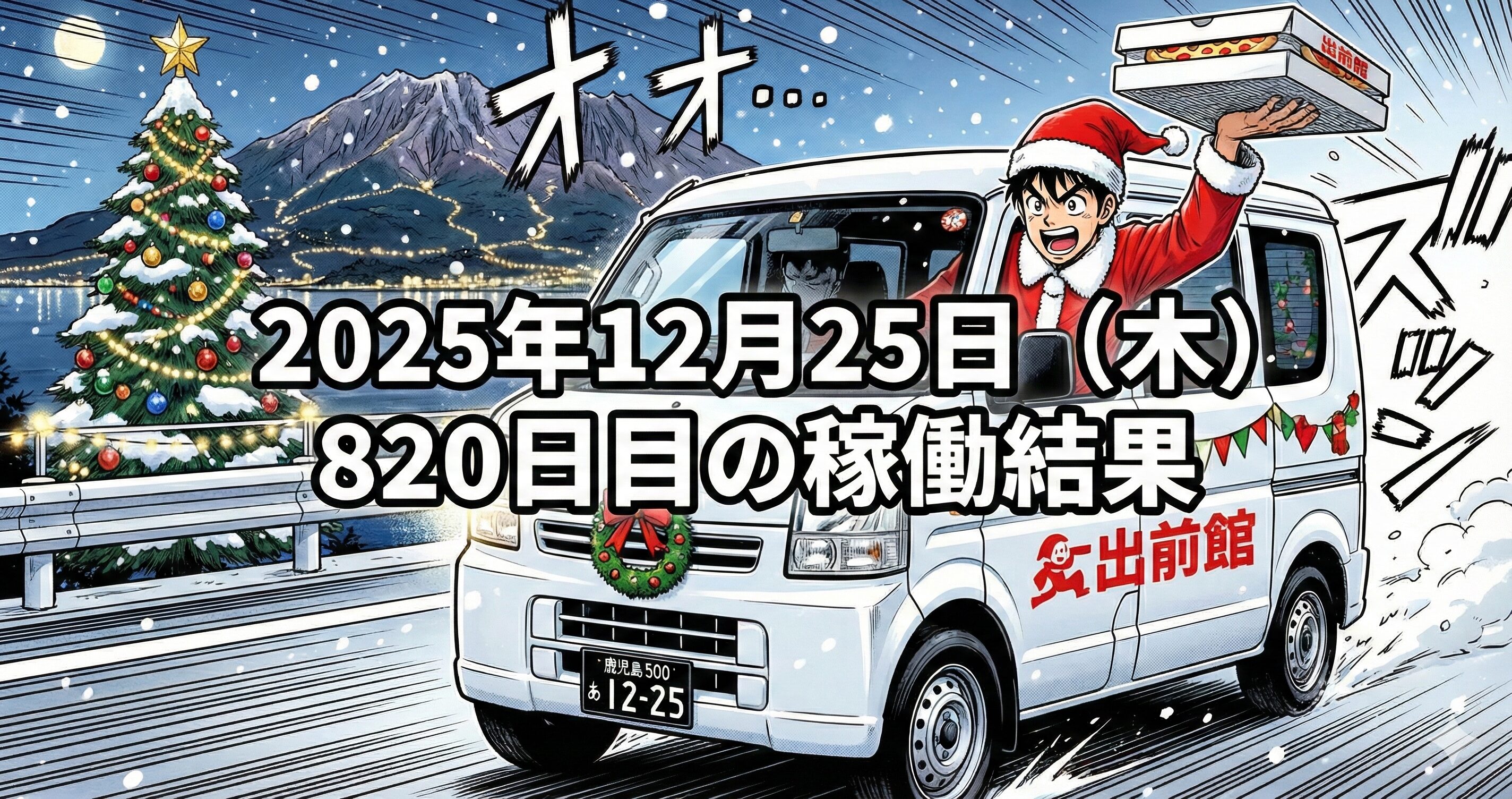 2025年12月25日(木) 820日目、鹿児島ウーバー配達員の稼働結果です。
