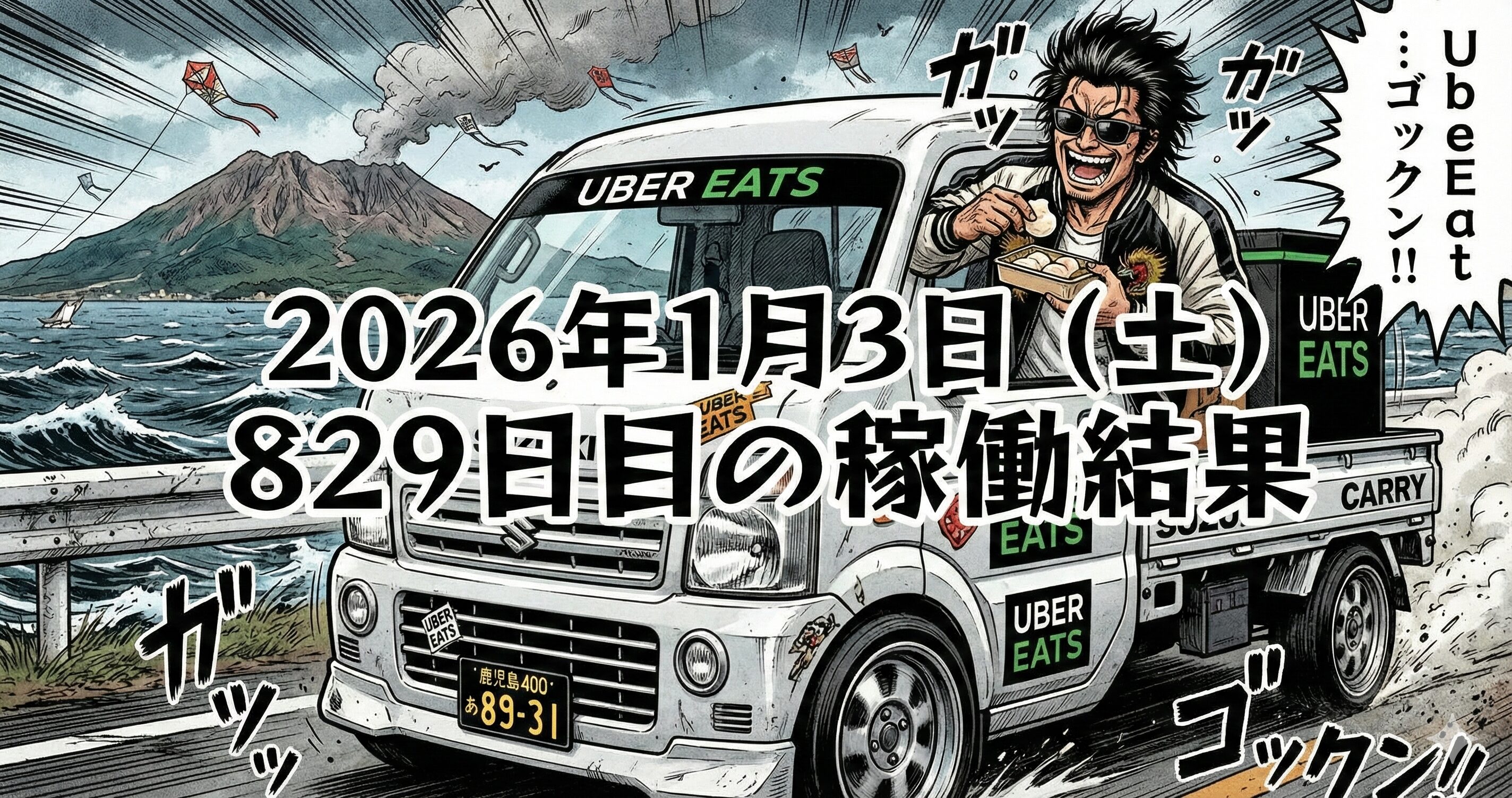 2026年1月3日(土) 829日目、鹿児島ウーバー配達員の稼働結果です。