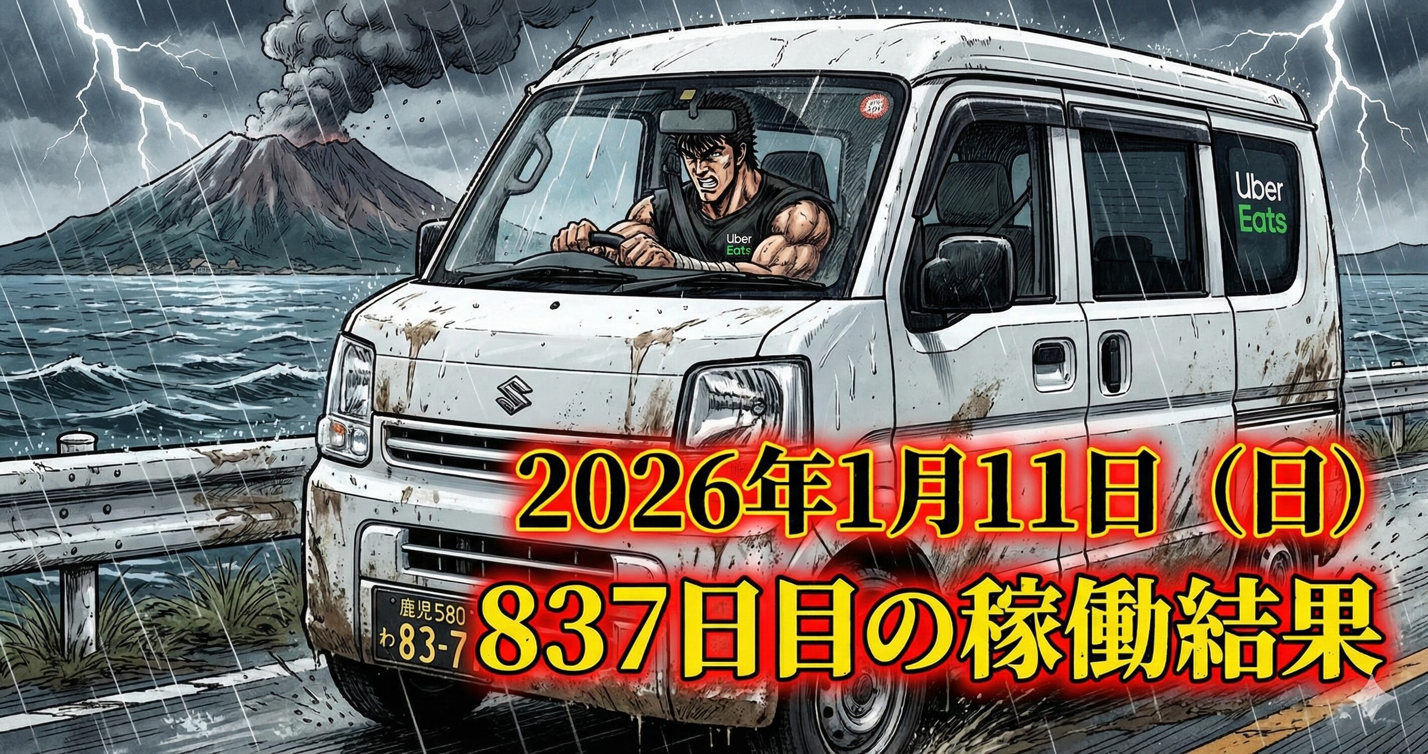 2026年1月11日(日) 837日目、鹿児島ウーバー配達員の稼働結果です。