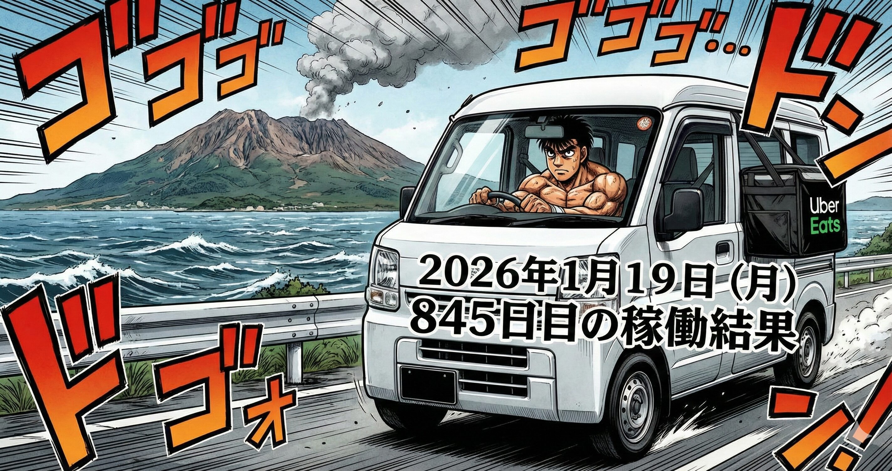 2026年1月19日(月) 845日目、鹿児島ウーバー配達員の稼働結果です。