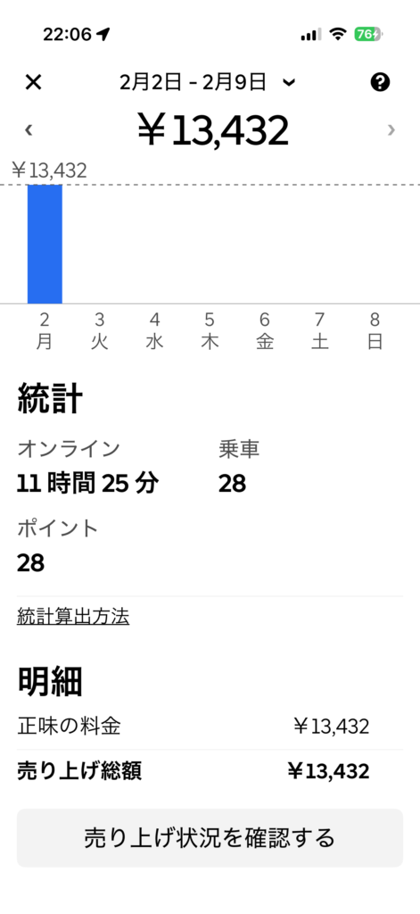 昼の部はPickGoの鳴り良く、夜の部は弱い雨が降ったり止んだりしたお陰でウーバーが爆鳴り高単価でウーバーメインで回して良き。