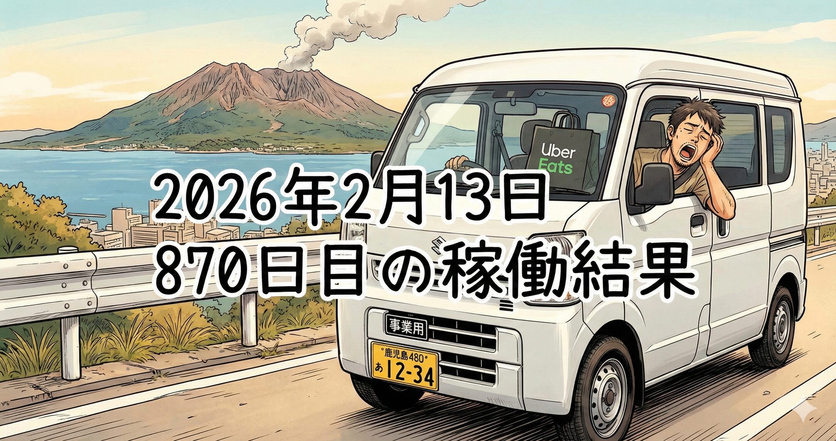 2026年2月13日(金) 870日目、鹿児島ウーバー配達員の稼働結果です。