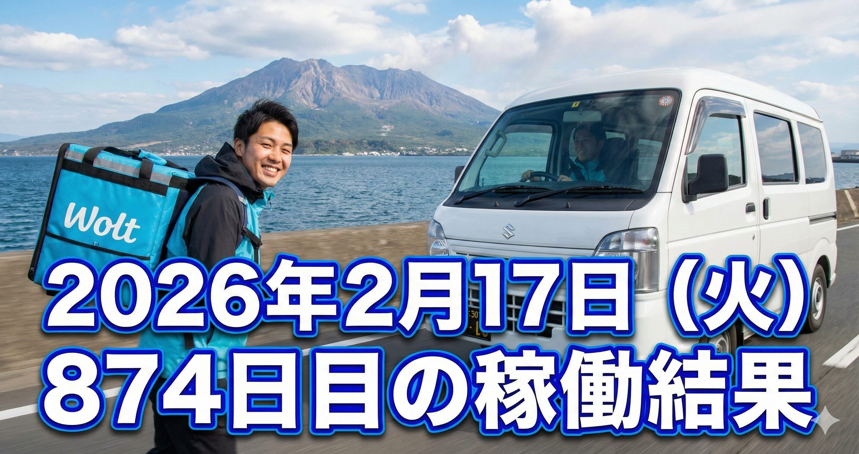 2026年2月17日(火) 874日目、鹿児島ウーバー配達員の稼働結果です。