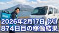 2026年2月18日(水) 875日目、鹿児島ウーバー配達員の稼働結果です。