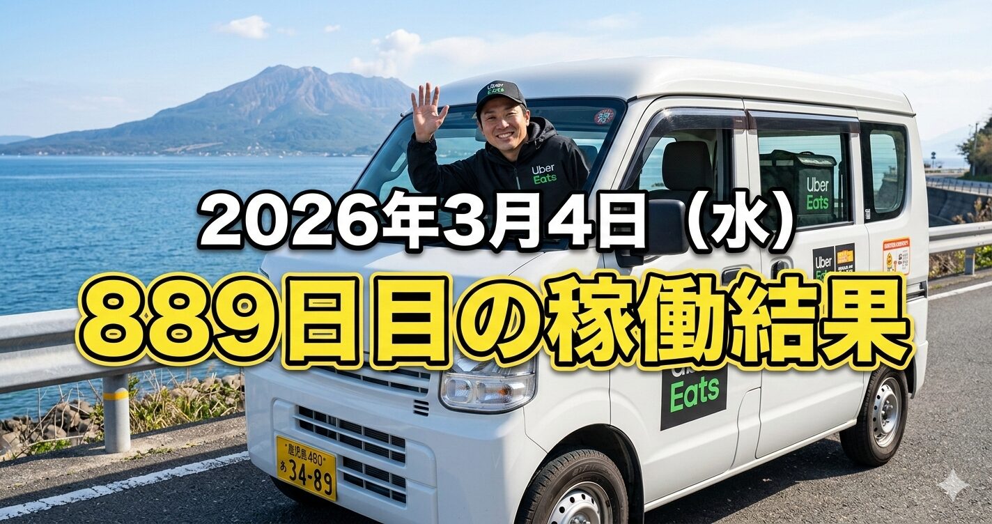 2026年3月4日(水) 889日目、鹿児島ウーバー配達員の稼働結果です。
