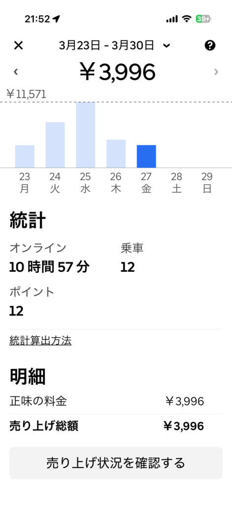 ウーバー 12件 3,996円