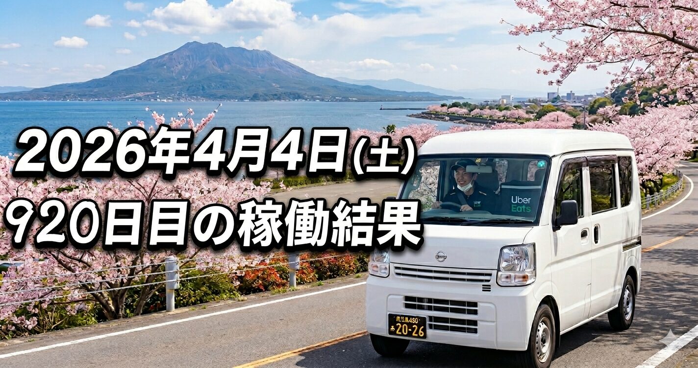 2026年4月4日(土) 920日目、鹿児島ウーバー配達員の稼働結果です。