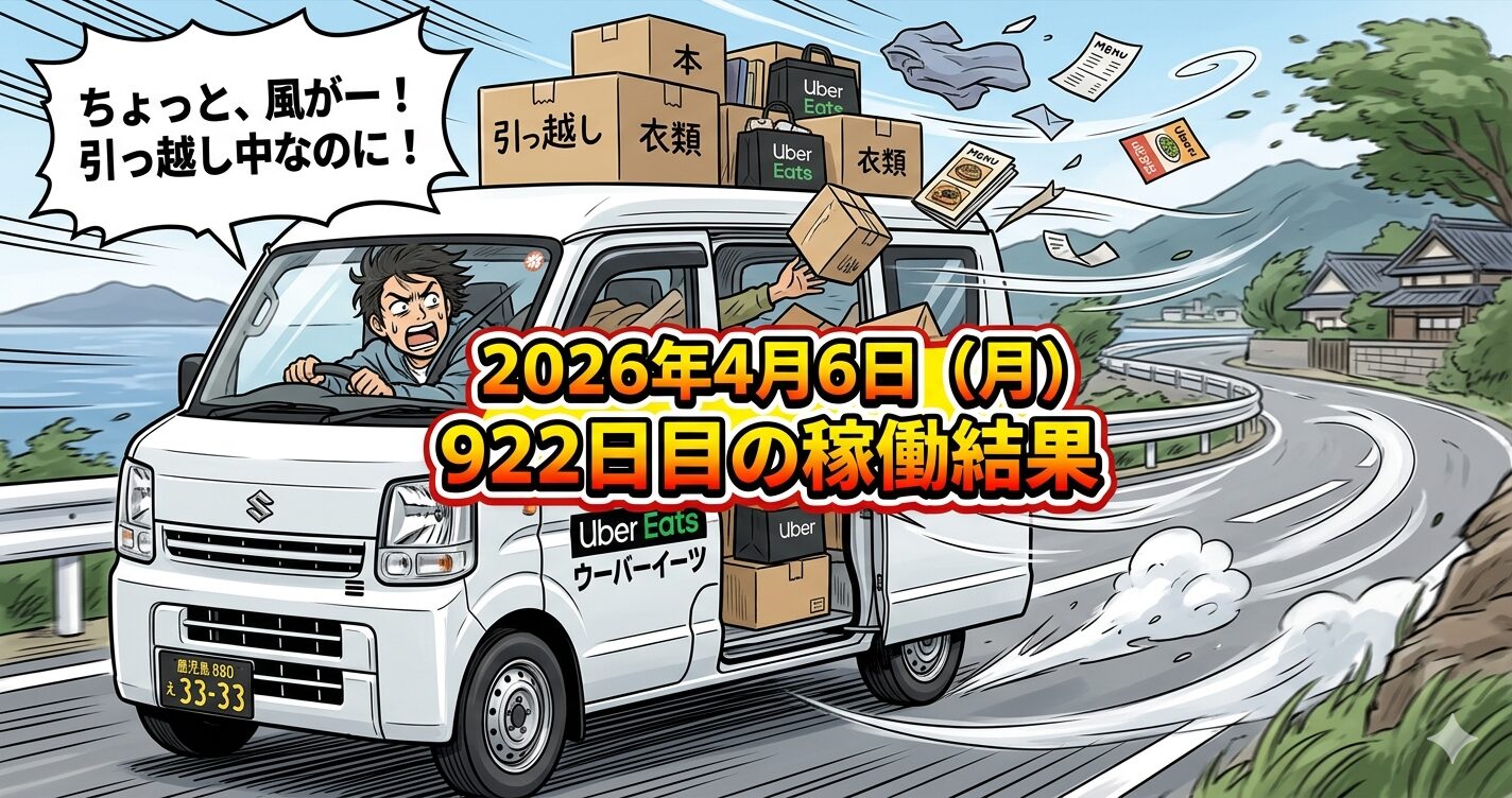 2026年4月6日(月) 922日目、ウーバー配達員の稼働結果です。