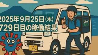フードデリバリー 2025年9月24日(水) 728日目、鹿児島ウーバー配達員の稼働結果 こんにちは!50歳で会社倒産・自己破産おじさんのステイゴールドです。2025年9月24日(水)728日目、鹿児島ウーバー配達員の稼働結果です。稼働時間0時間0分ウーバー0件出前館 0件PickGo0件合計0件用事のため稼働は終日お休み。 2025.09.25 フードデリバリー