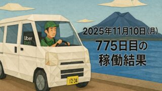 2025年11月10日(月) 775日目、鹿児島ウーバー配達員の稼働結果