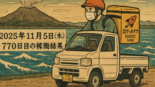 2025年11月5日(水) 770日目、鹿児島ウーバー配達員の稼働結果