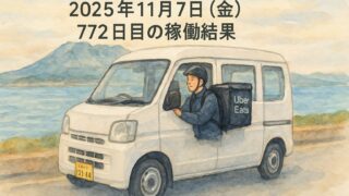 2025年11月7日(金) 772日目、鹿児島ウーバー配達員の稼働結果