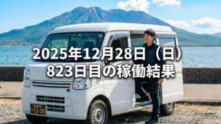 2025年12月28日(日) 823日目、鹿児島ウーバー配達員の稼働結果