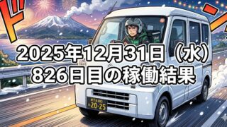 こんにちは!50歳で会社倒産・自己破産おじさんのステイゴールドです。2025年12月31日(水)826日目、鹿児島ウーバー配達員の稼働結果です。稼働時間10時間31分ウーバー32件25,303円出前館   0件PickGo  1件  595...