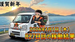 こんにちは!50歳で会社倒産・自己破産おじさんのステイゴールドです。2026年1月1日(木)827日目、鹿児島ウーバー配達員の稼働結果です。稼働時間10時間50分ウーバー31件18,920円出前館   8件 4,728円PickGo  1件...